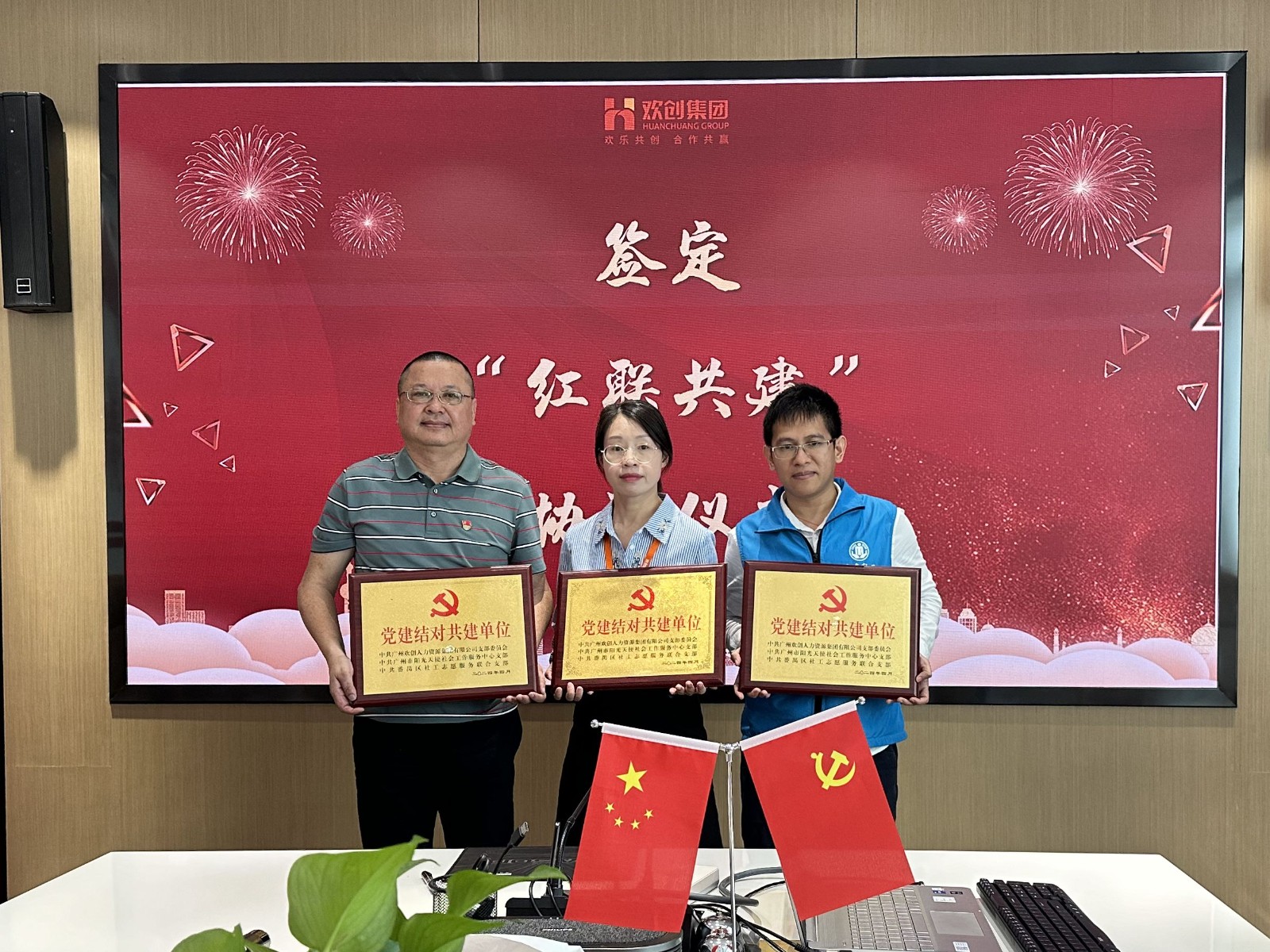 欢创集团党支部与广州市阳光天使党支部、番禺区社工志愿服务党支部开展红联共建活动