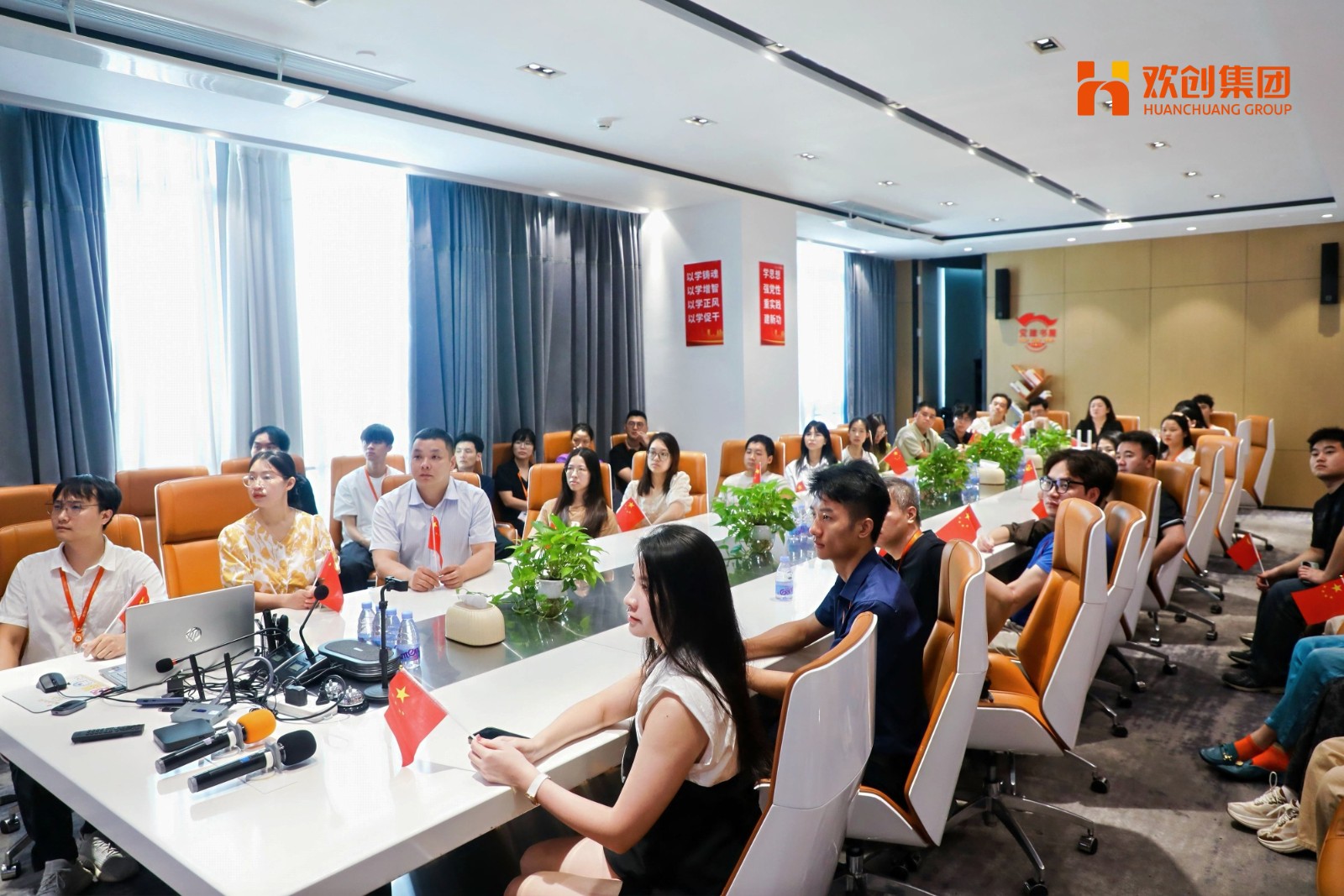 欢创集团总部组织全体员工共同收看直播,一起见证这一庄严时刻!